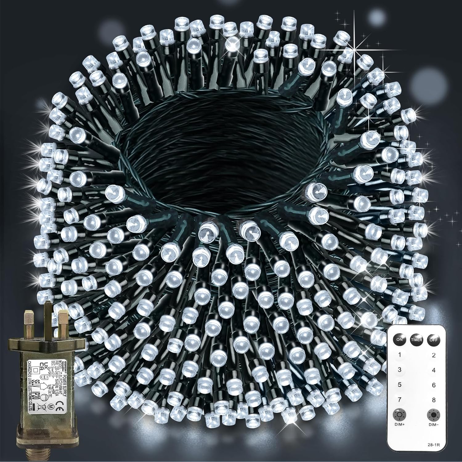 Specification: 120M 1000 LED Outdoor Fairy Lights, Christmas Tree Lights Plug in 8 Modes Remote Control Mains Powered Waterproof String Lights for Garden, Yard, Wedding, Party Decor- Cool White