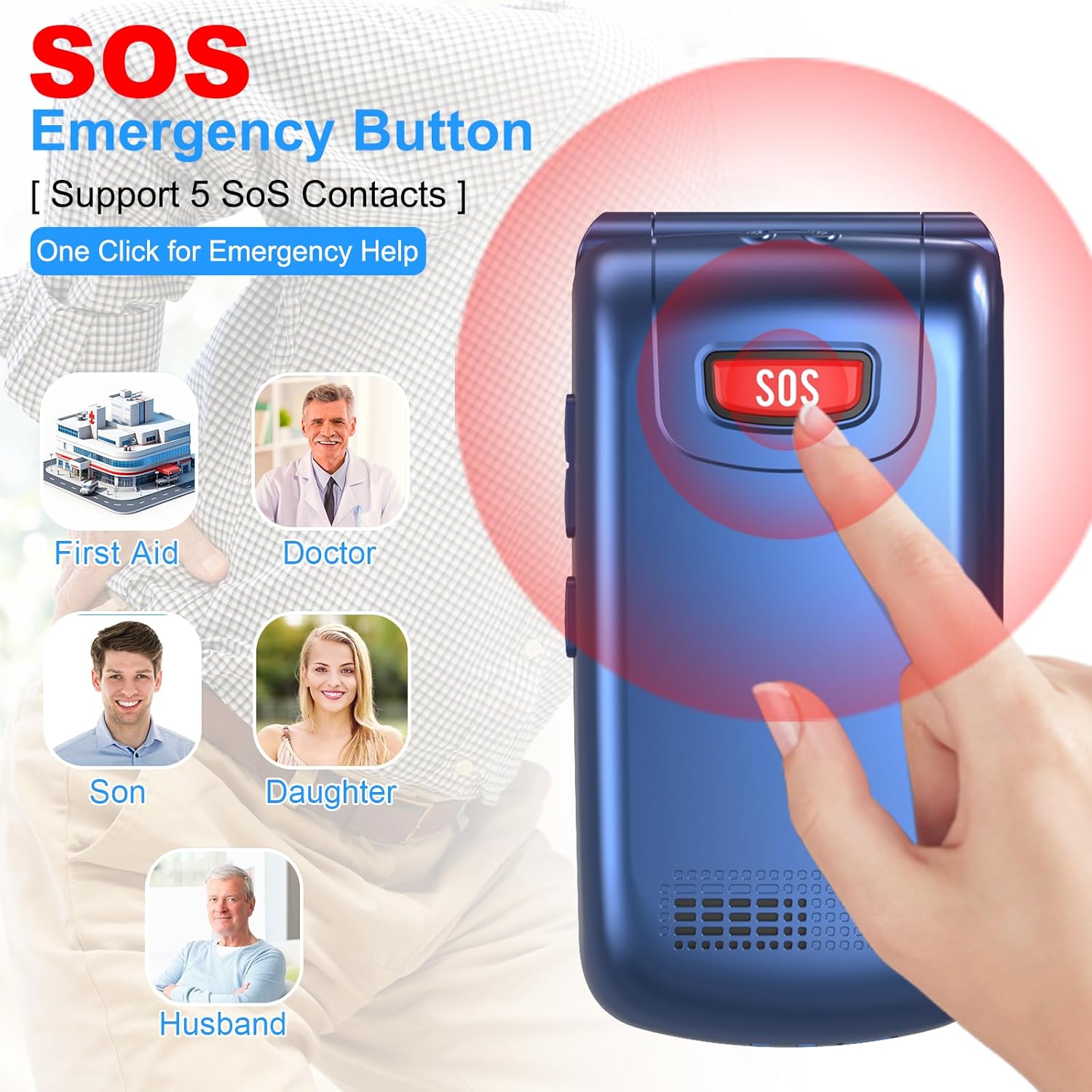 4G Flip Phones Unlocked, Dual-SIM Big Button Mobile Phone for Elderly / Visually Impaired with SOS Emergency Button, Type-C Charging, Easy-to-use Basic mobile Phone with Charging Dock!