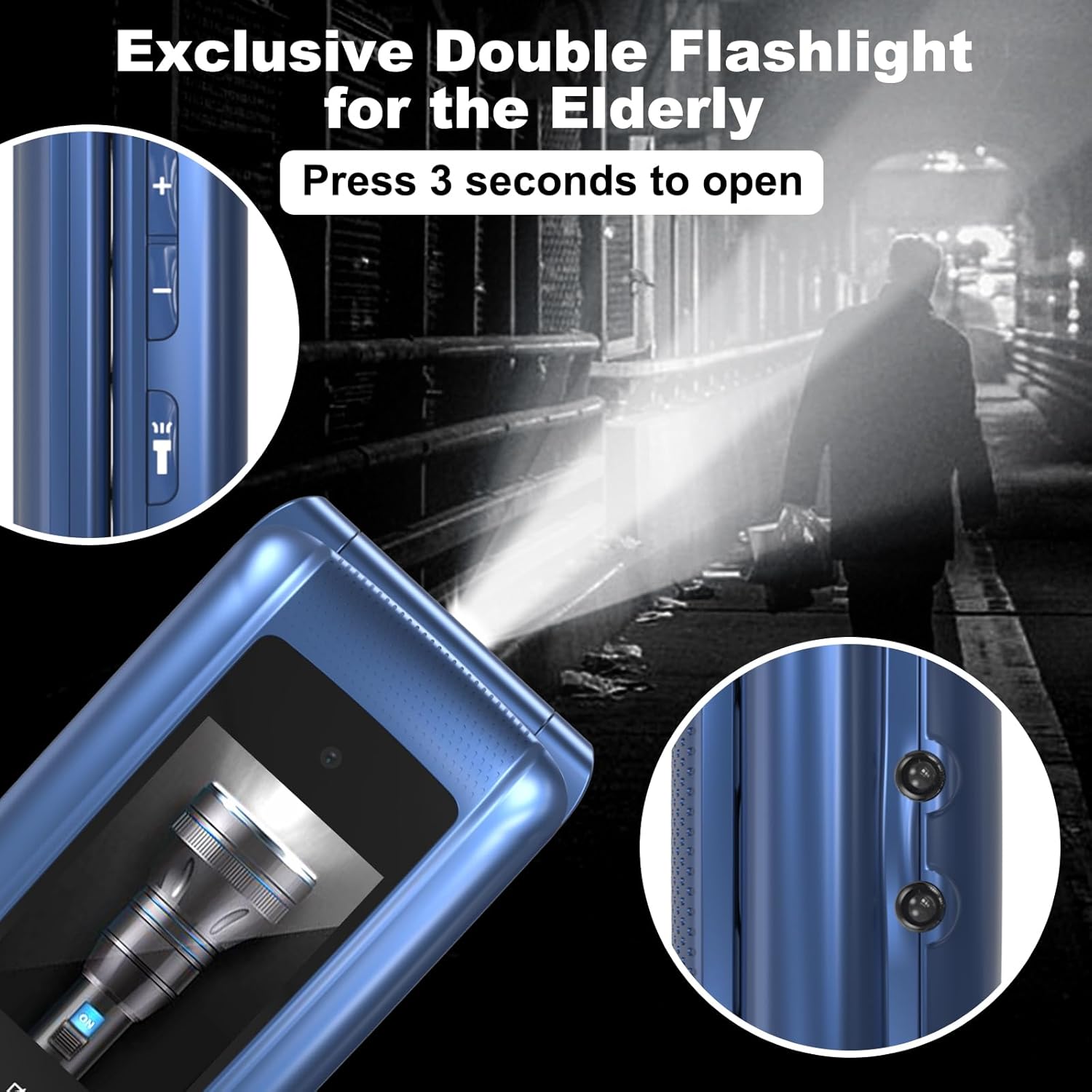 Mobile Flip Phones with 2.8″ + 1.77″ Dual Large-Screen, Extra-Large Display, Big Fonts & Icons – Perfect for Elderly Users!