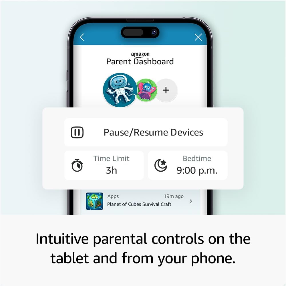 ROBUST PARENTAL CONTROLS: manage everything from your phone, including screen-time limits, pausing or resuming the device, accessing educational content and approving requests from the app store, such as downloading Netflix, Disney+ and Zoom.