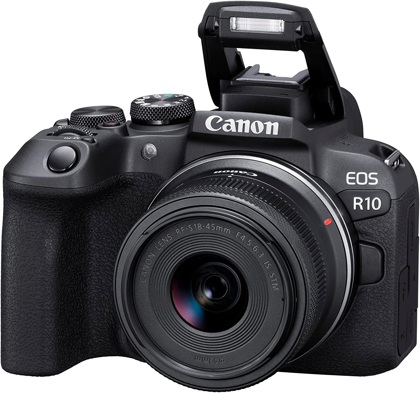 Canon EOS R10 + RF-S 18-45mm IS STM Lens – Compact Mirrorless Digital Camera – 24.2 MP, Dual Pixel CMOS AF II – 4K up to 60p – 23 FPS Continuous Shooting – Face & Eye Detection – Bluetooth, Wi-Fi