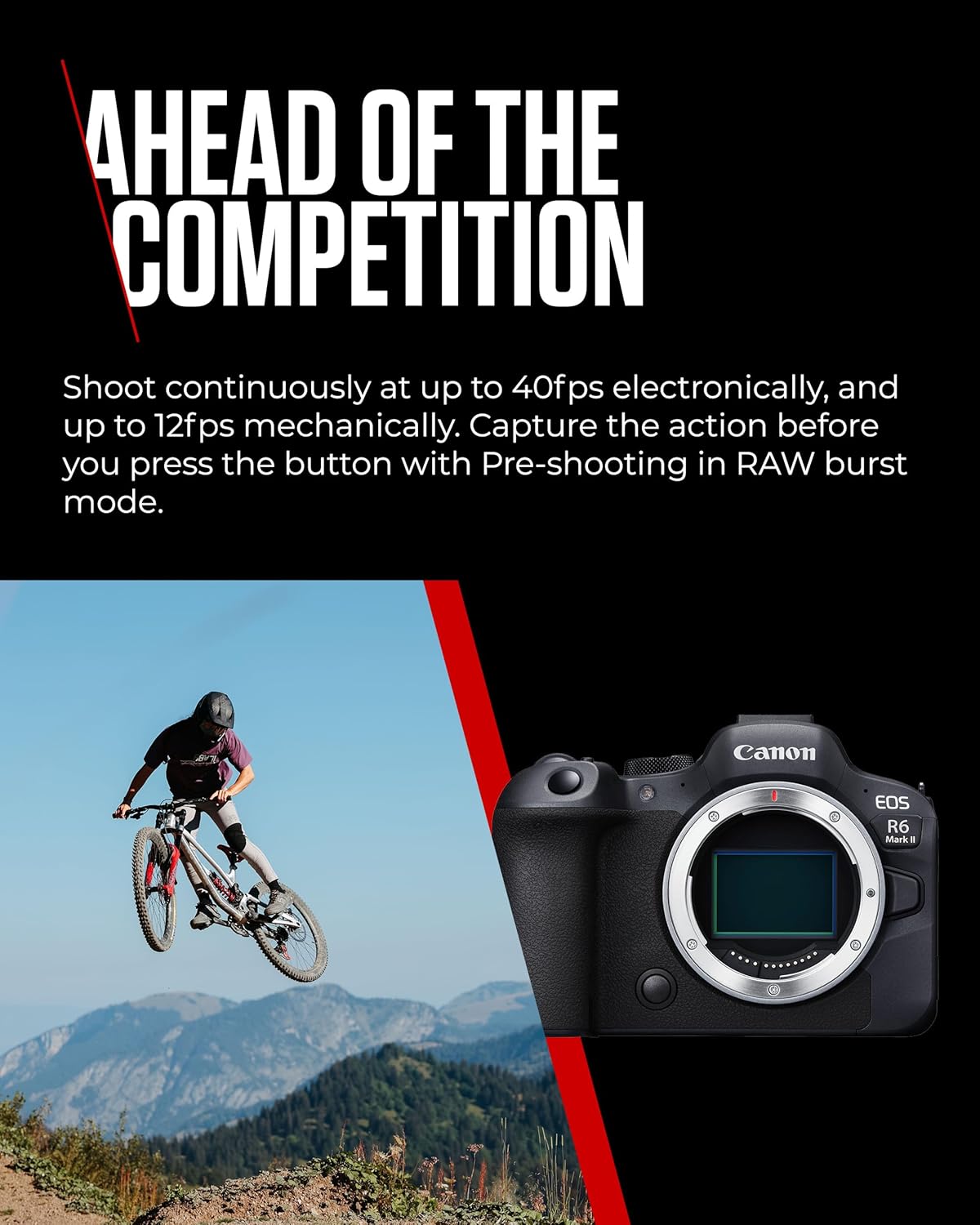 Canon EOS R6 MarkII Full Frame Mirrorless Camera Black+2 Batteries (Additional Battery Kit) |24.2-megapixels, up to 40fps Continuous Shooting,4K 60p, up to 8-Stops IS and Dual Pixel CMOS Auto Focus II