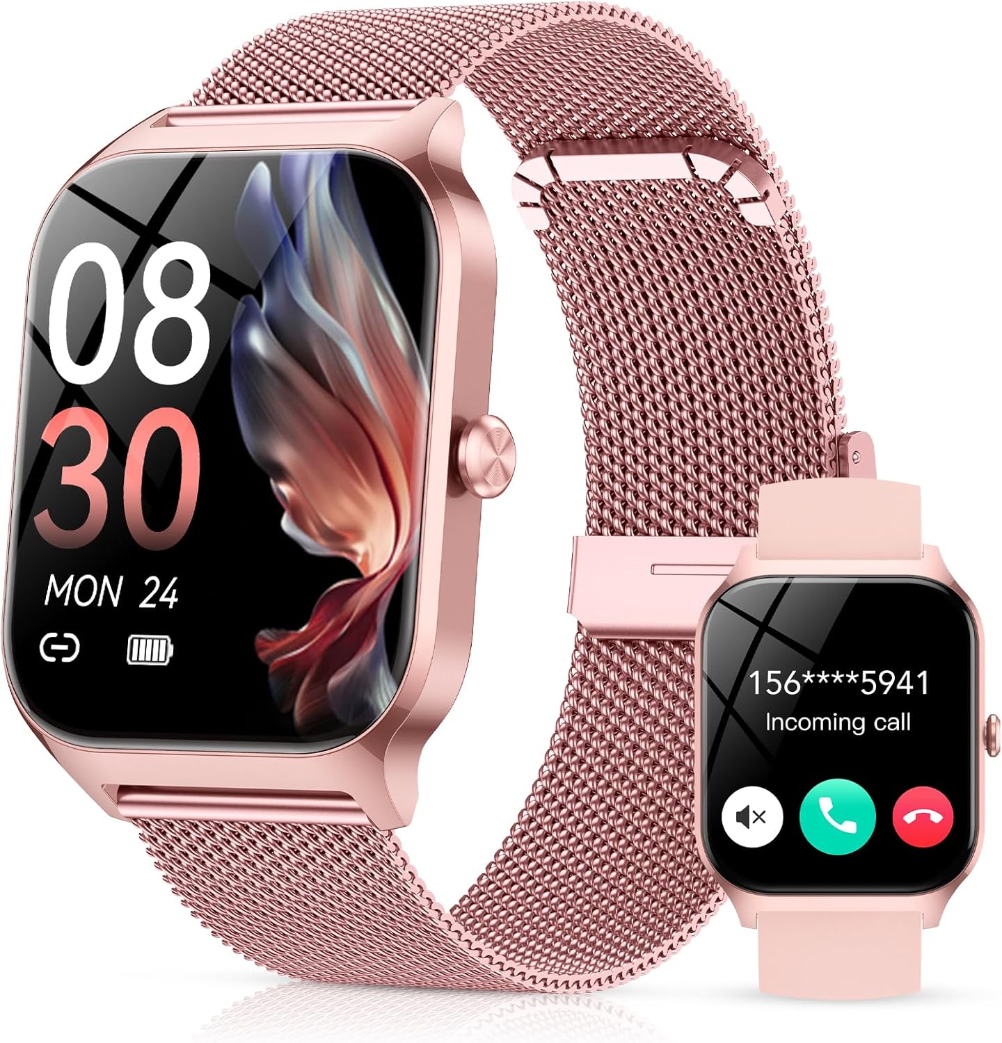 CASCHO Smart Watches for Women, 1.85″ HD Smartwatch with 120+ Sports Modes/Heart Rate/Sleep Monitor, IP68 Waterproof Fitness Tracker with Bluetooth Calling/Voice Control for Android iOS, Rose Gold