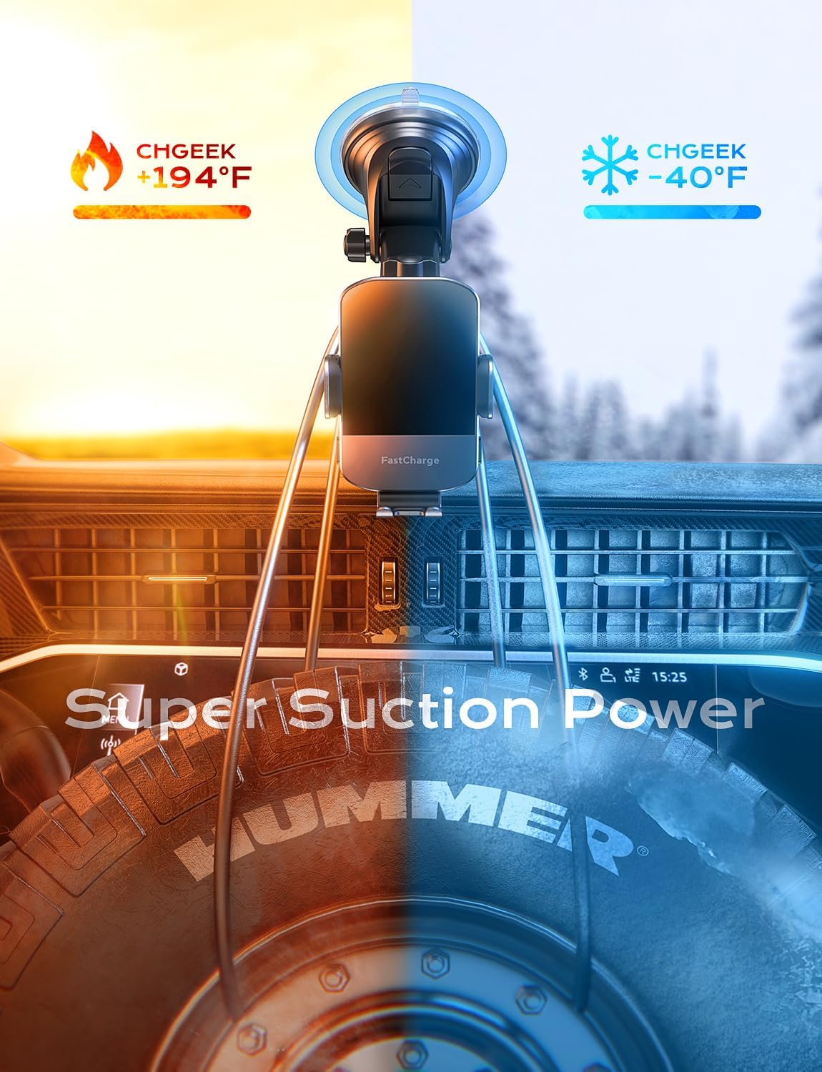 【Case Friendly & Flexible Angle Adjustment】Enjoy hassle-free charging through phone cases up to max 4mm(0.16 inch) thick with our CHGeek phone holder for car. This product is not compatible with otterbox phone case (its thickness is too thick). Please note that metal cases, magnets, credit cards, grips, and stands may interfere with charging. For optimal viewing and safe driving, the 360° rotating sphere and retractable & foldable bracket allow you to adjust the angle to your preference.