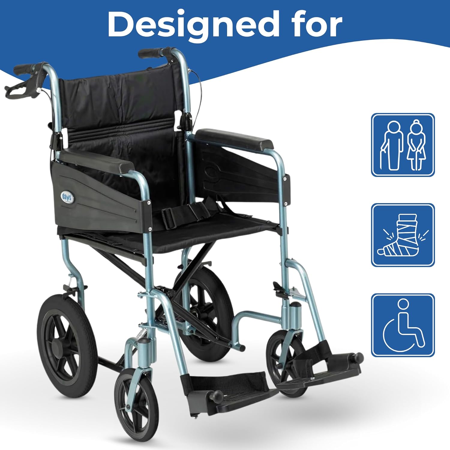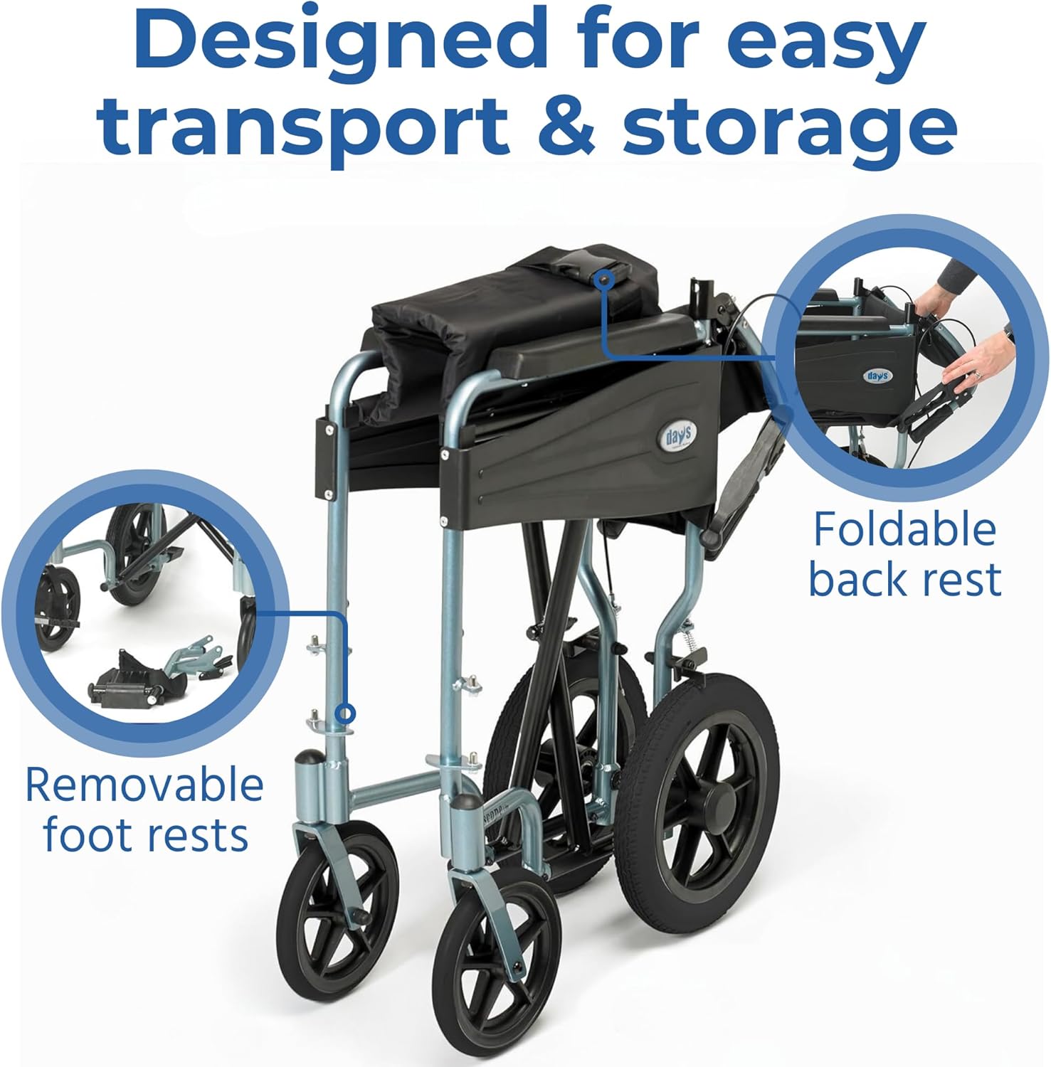 The Days Escape Lite Wheelchair is a trusted mobility aid designed to provide unmatched convenience and functionality for users and caregivers alike. Built with an ultra-compact aluminium frame, this lightweight folding wheelchair is easy to store, transport, and handle, making it perfect for travel or everyday use. Whether it’s needed as a portable wheelchair for outings or a manual wheelchair for daily mobility, the Escape Lite combines comfort, reliability, and practicality in one sleek design. This wheelchair is a versatile choice, ideal for individuals of all ages and needs. It works seamlessly as a child wheelchair, kids wheelchair, or even a small wheelchair for users requiring a compact fit. For adults, its foldable wheelchair for adults design makes it a favorite among caregivers, as it’s easy to navigate tight indoor spaces and uneven outdoor terrains. With flame-retardant padded upholstery and ergonomic footrests, the Days Escape Lite ensures all-day comfort, especially for elderly users or those with limited mobility. Safety is a top priority with the Days Escape Lite. It features puncture-proof tyres, an adjustable seatbelt, and a reliable cable braking system, giving users and caregivers peace of mind during use. This wheelchair performs exceptionally well across various terrains, whether used as an indoor wheelchair, a beach wheelchair, or even a wheelchair for larger persons. It’s also suitable for users seeking wheelchairs for heavier people or those with specific needs like wheelchairs with leg elevation. In addition to its practicality, the Days Escape Lite stands out for its stylish and customizable design. Available in multiple seat widths and vibrant colors, it caters to personal preferences while remaining highly functional. Despite its lightweight construction, it is durable enough to serve as a heavy-duty wheelchair, and its ergonomic push handles make it especially convenient for caregivers.