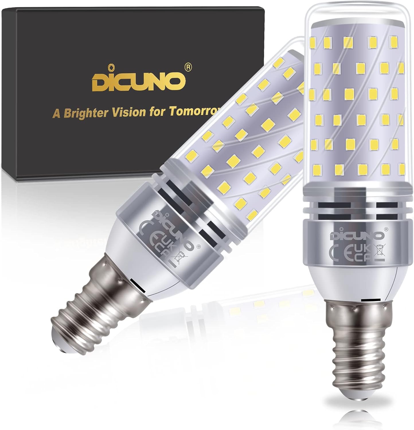 Specification: DiCUNO E14 LED Bulb 10W, E14 Small Edison Screw Light Bulbs, Cool White 6000K, 130W Incandescent Equivalent, 1400LM Non-Dimmable, 230V, SES Corn Light for Home Lighting, Pack of 2