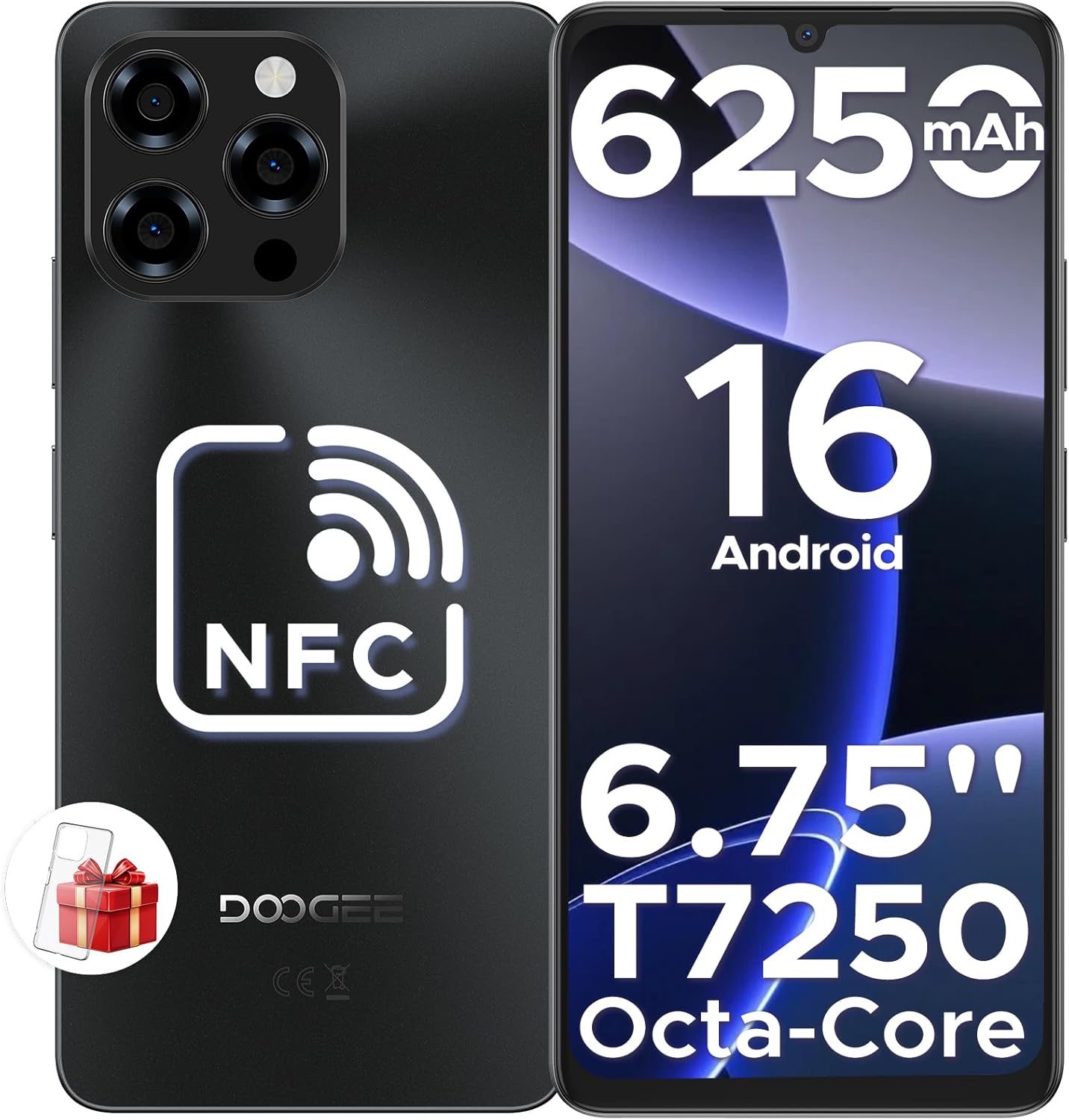 Specification: DOOGEE Note 58 Mobile Phones – Newest Android 16 Smartphone, 6.75″ HD+ Display, 6250mAh Android Phones, 32GB(8GB RAM)+128GB+2TB SIM Free Mobile Phone, Face ID, Widevine L1, 5G WiFi/NFC/OTG
