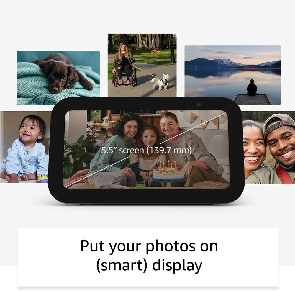 ALEXA CAN SHOW YOU MORE – Echo Show 5 includes a 5.5″ display so you can see news and weather at a glance, make video calls, view compatible cameras, stream music and programmes, and more.