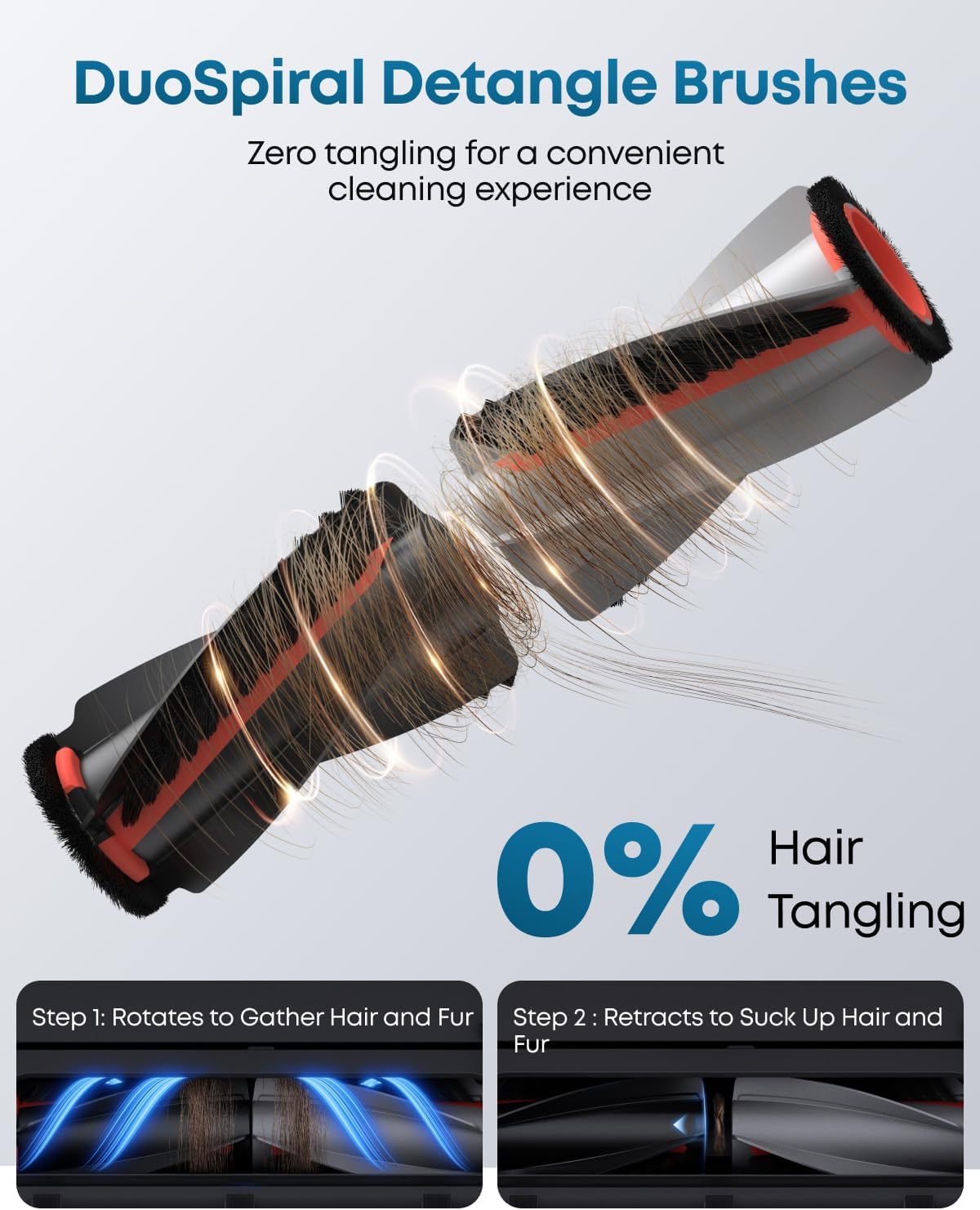 𝐀𝐮𝐭𝐨-𝐃𝐞𝐭𝐚𝐧𝐠𝐥𝐢𝐧𝐠 𝐃𝐮𝐨𝐒𝐩𝐢𝐫𝐚𝐥 𝐁𝐫𝐮𝐬𝐡𝐞𝐬: DuoSpiral Brushes prevent hair entanglement and reduce maintenance frequency. No mess, no stress, just a hassle-free cleaning experience.