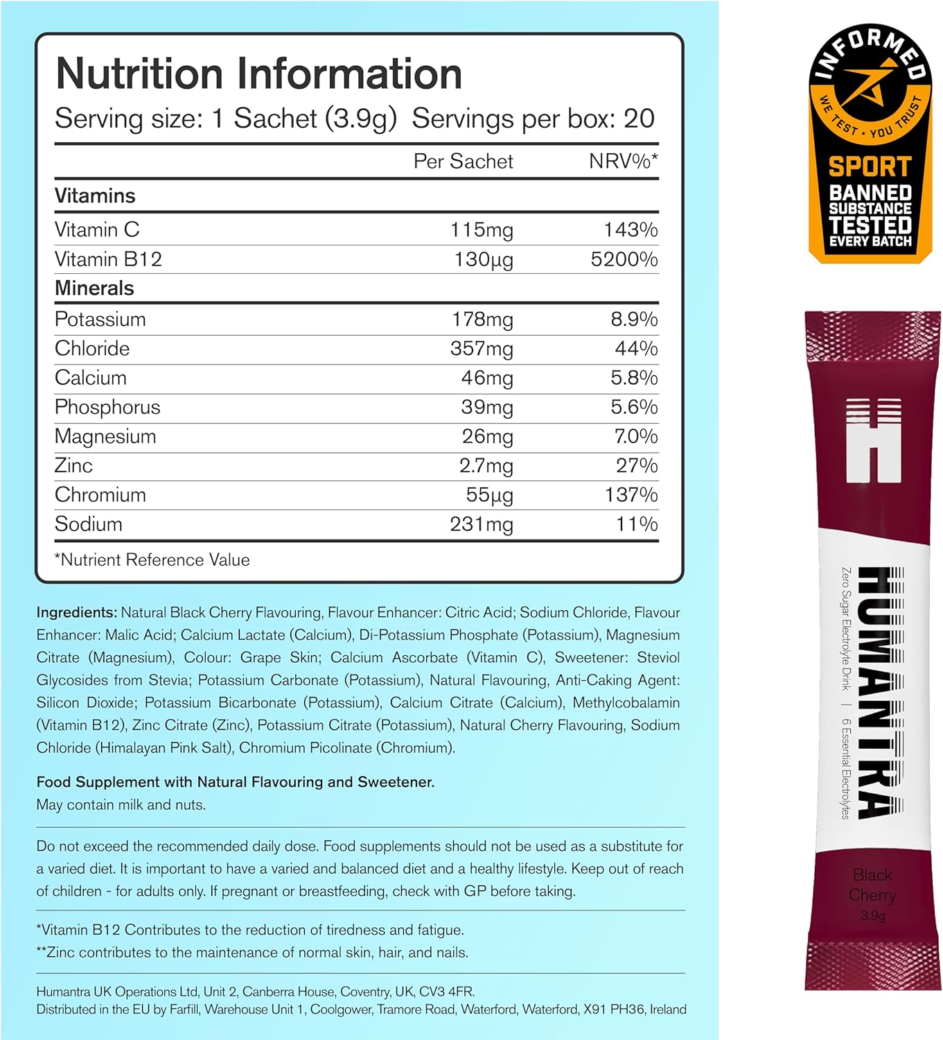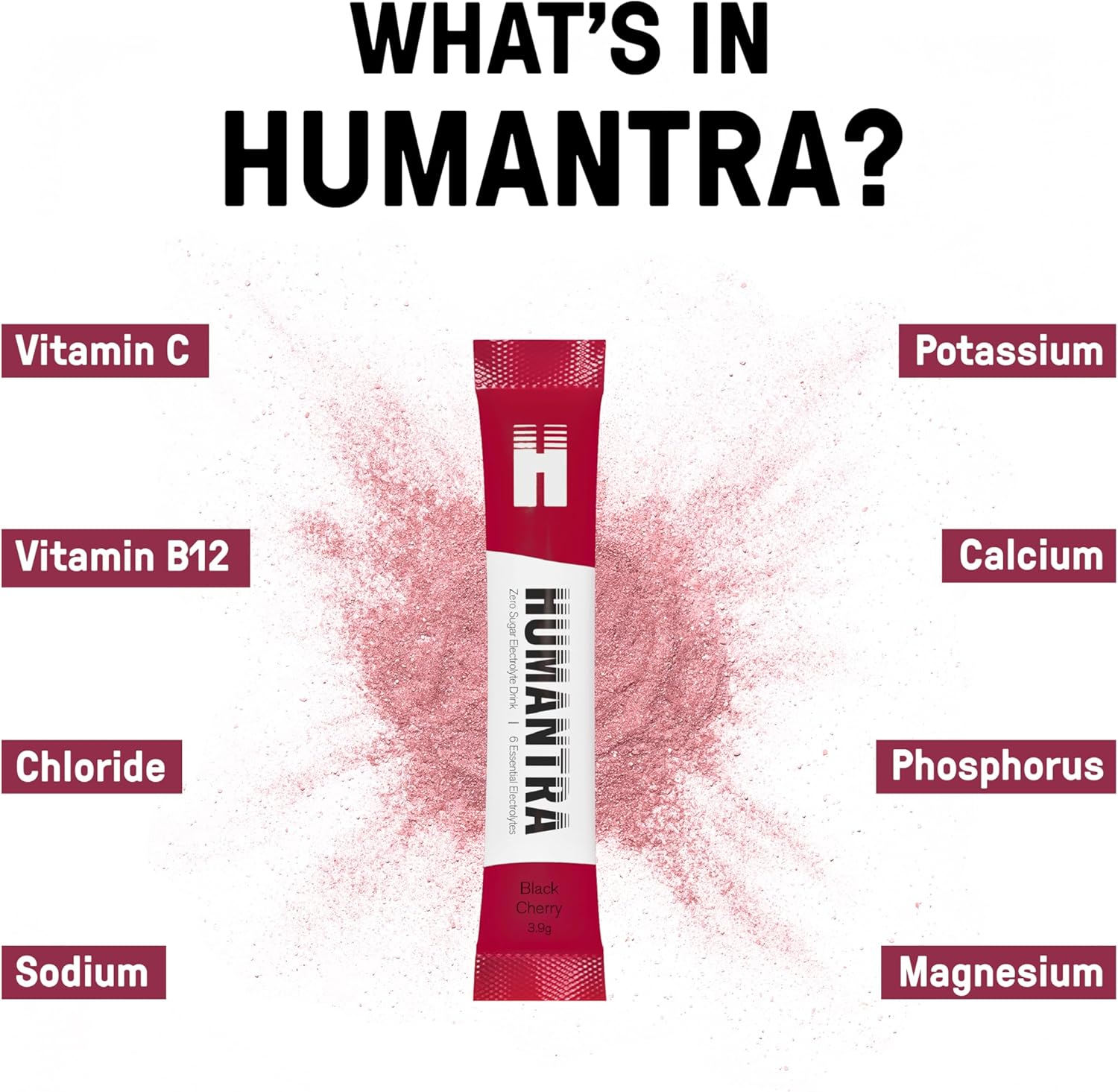 Specification: Humantra Electrolyte Packets | Zero Sugar | W/ 6 Electrolytes | Electrolytes Powder (20 Count, Black Cherry)