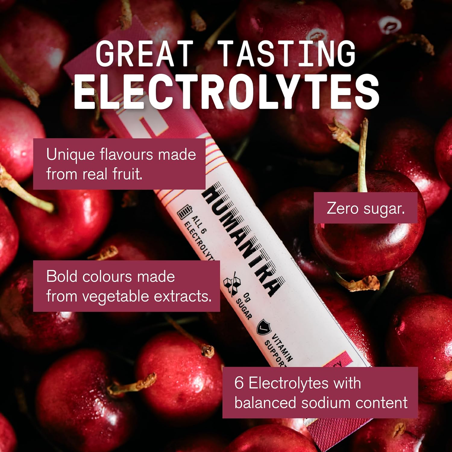 Humantra Electrolyte Packets | Zero Sugar | W/ 6 Electrolytes | Electrolytes Powder (20 Count, Black Cherry)