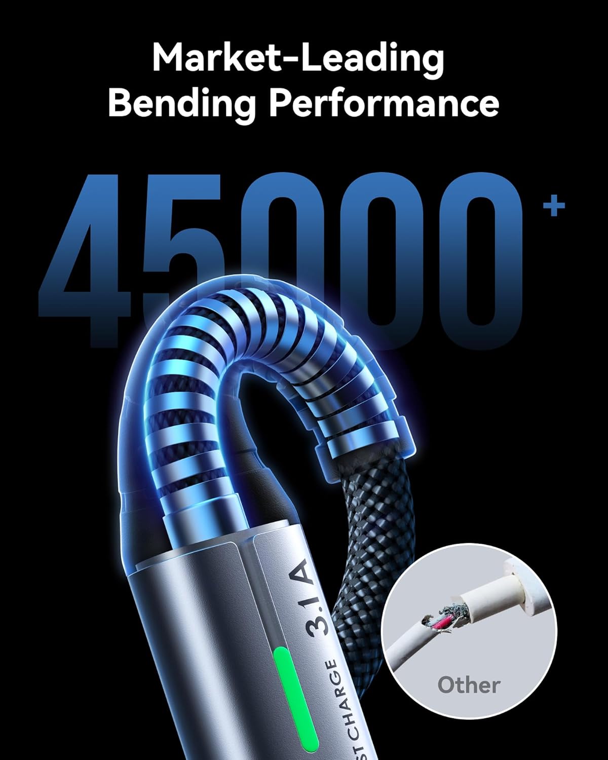 A Lifetime Cable: The exclusive FLYWEAVE braided jacket, flexible couplings with a surprising service life of 45000 bends and a precision 3D laser welded aluminum alloy connector build a cable that lasts longer than ever. With the most popular length of 2m, it can meet your needs wherever you are.