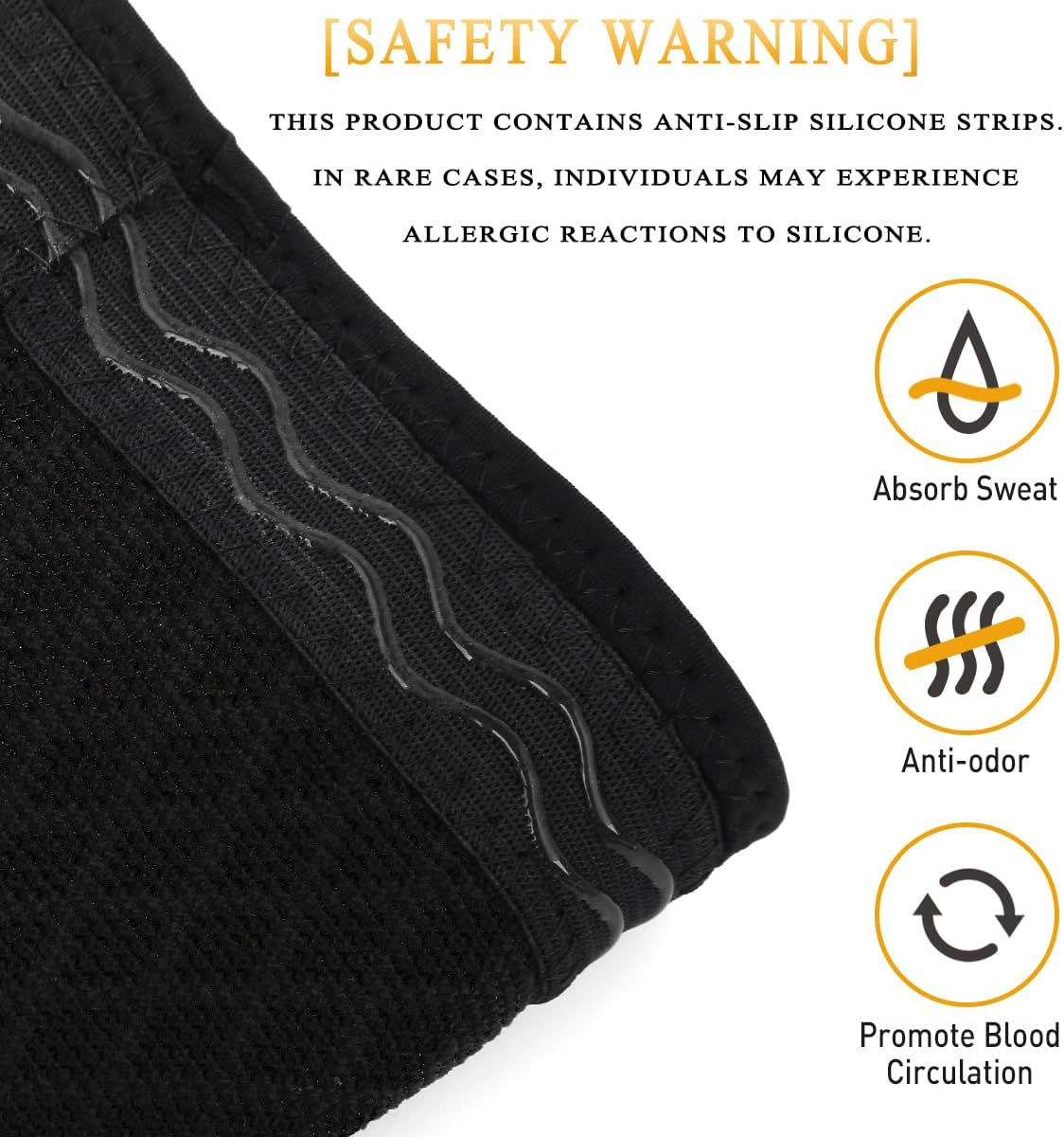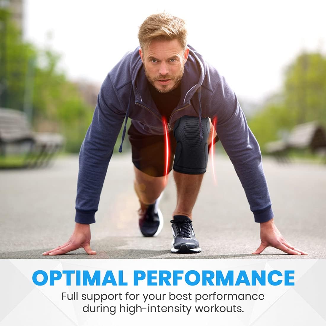 Great Support & Full protection: The knee support offers stable support during your workouts and casual everyday activities.Pain Relief & Injury Recovery: The knee brace encourage blood circulation, reduce inflammation/swell and speed up the recovery.Anti-Slip System: Special knitted technical design with two silicone gel strips, ensuring the knee sleeves stay in place.Maximum Comfortable: Breathable & Sweat-Absorbing material gives you a smooth and soft feel so you can wear them all day long!