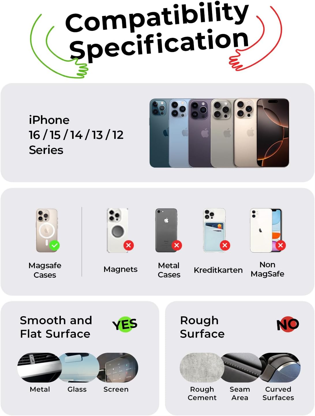 Zero-Shake SilenceTech:Shark tooth bionic structure gel pad interlocks + vacuum core.Eliminates wobbles & squeaks on cobblestone roads, absorbing 0.5mm micro-vibrations! No more “creak-creak” shame during business calls cooperate with this magsafe car mount