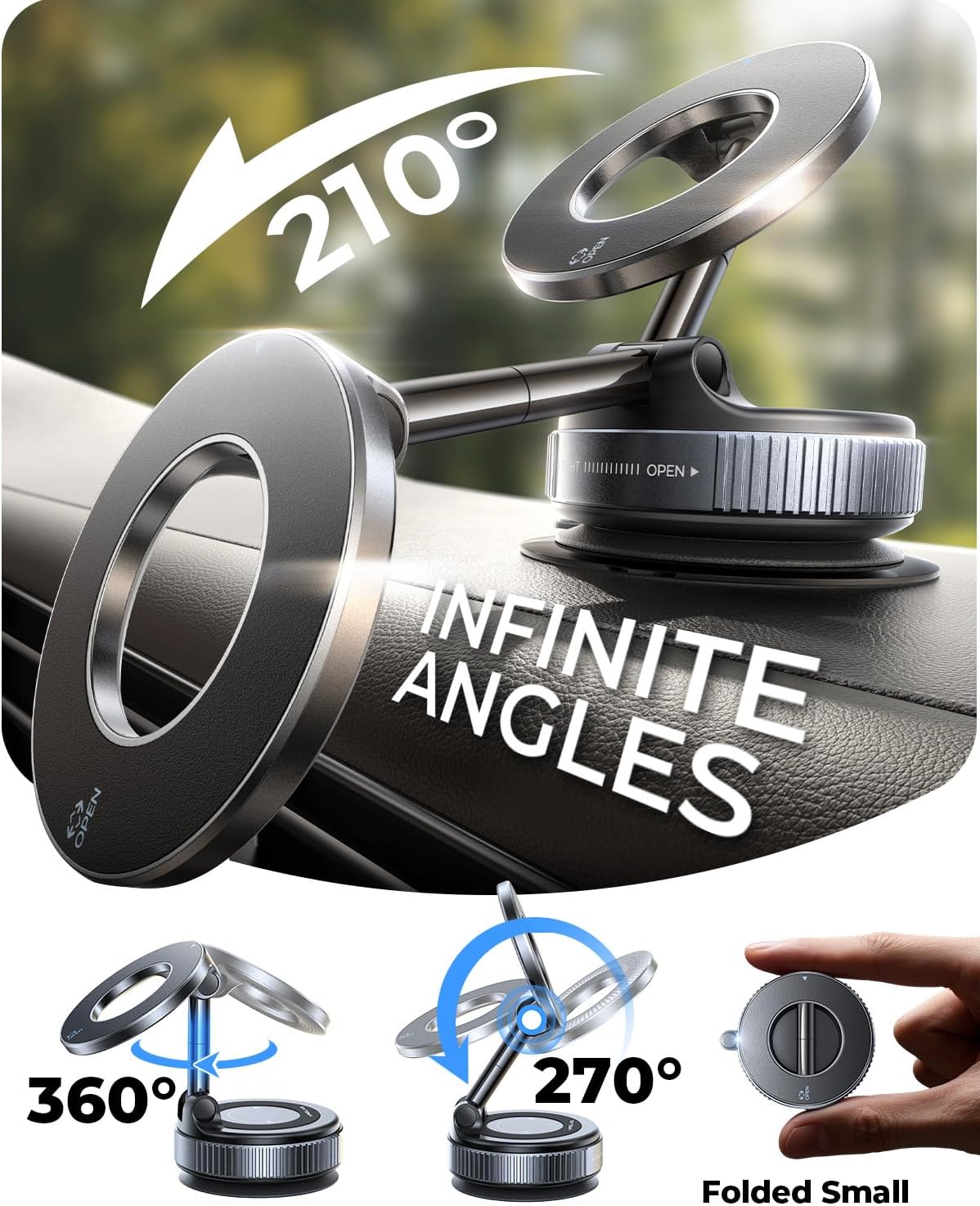 Specification: MRGLAS 2026 Upgraded Vacuum Magnetic Mobile Phone Holder Car for Magsafe Car Mount, Suction Cup Phone Holder [17KG Suction Power & 24*N55 Magnet], 360° Rotatable, for iPhone 17 Pro Max 16