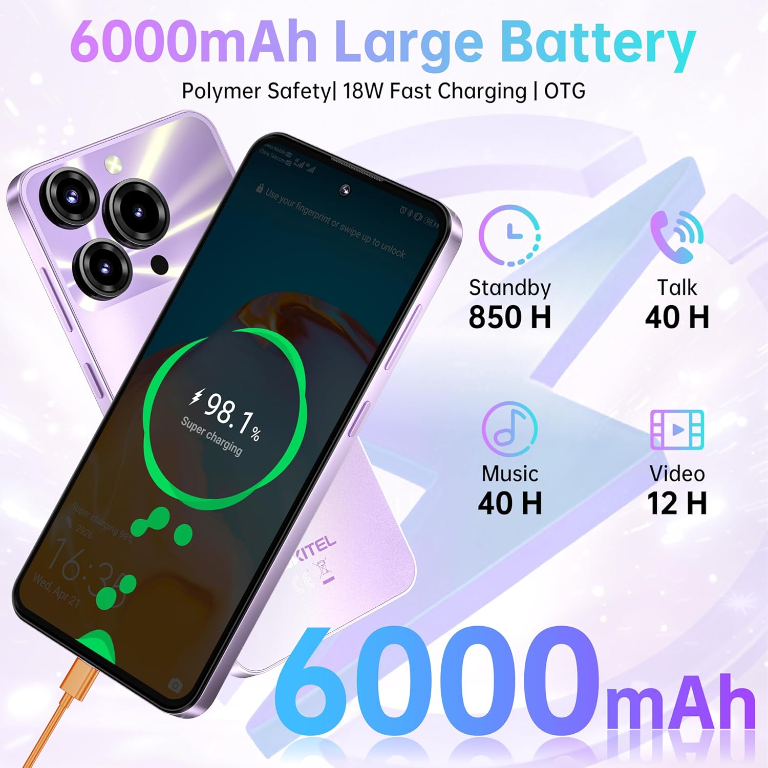 【6000mAh Battery + OTG + 18W Fast Charging】OUKITEL C69 mobile phones is powered by 6000mAh high-capacity battery that stays charged all day long. The phone supports 18W Type-C charging and OTG, which can be used to charge other electronic devices in an emergency. Besides, OUKITEL C69 smart phone with 850 hours standby, 40 hours talk time, 12 hours video time, lets you indulge in gaming, video streaming or calls without worrying about running out of battery.