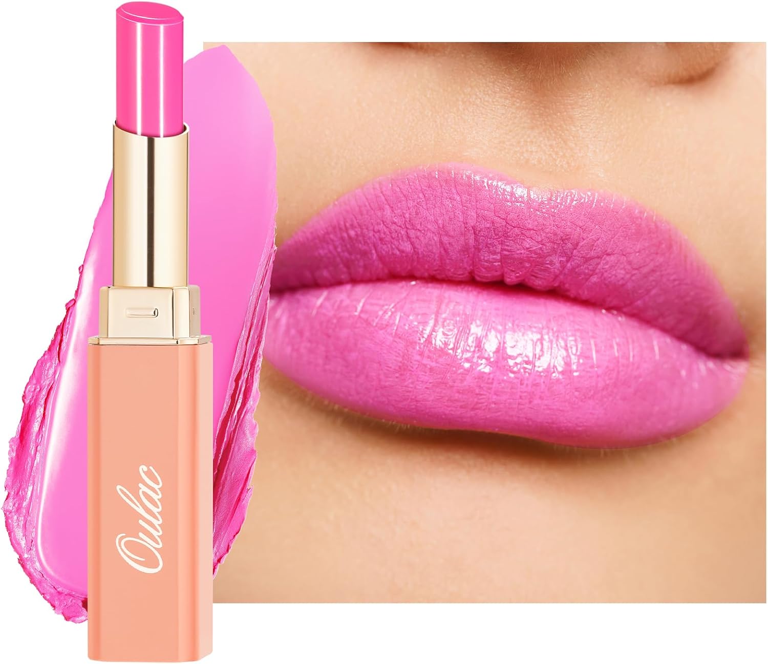 Oulac Bright Pastel Pink Lipstick – Moisture Shine Hydrating Lipstick & Tinted Lip Balm for Dry Lips, Medium Coverage Lip Colour | Juicy Look, Glossy Finish, Vegan, Cruelty-Free, Girl Power (15)