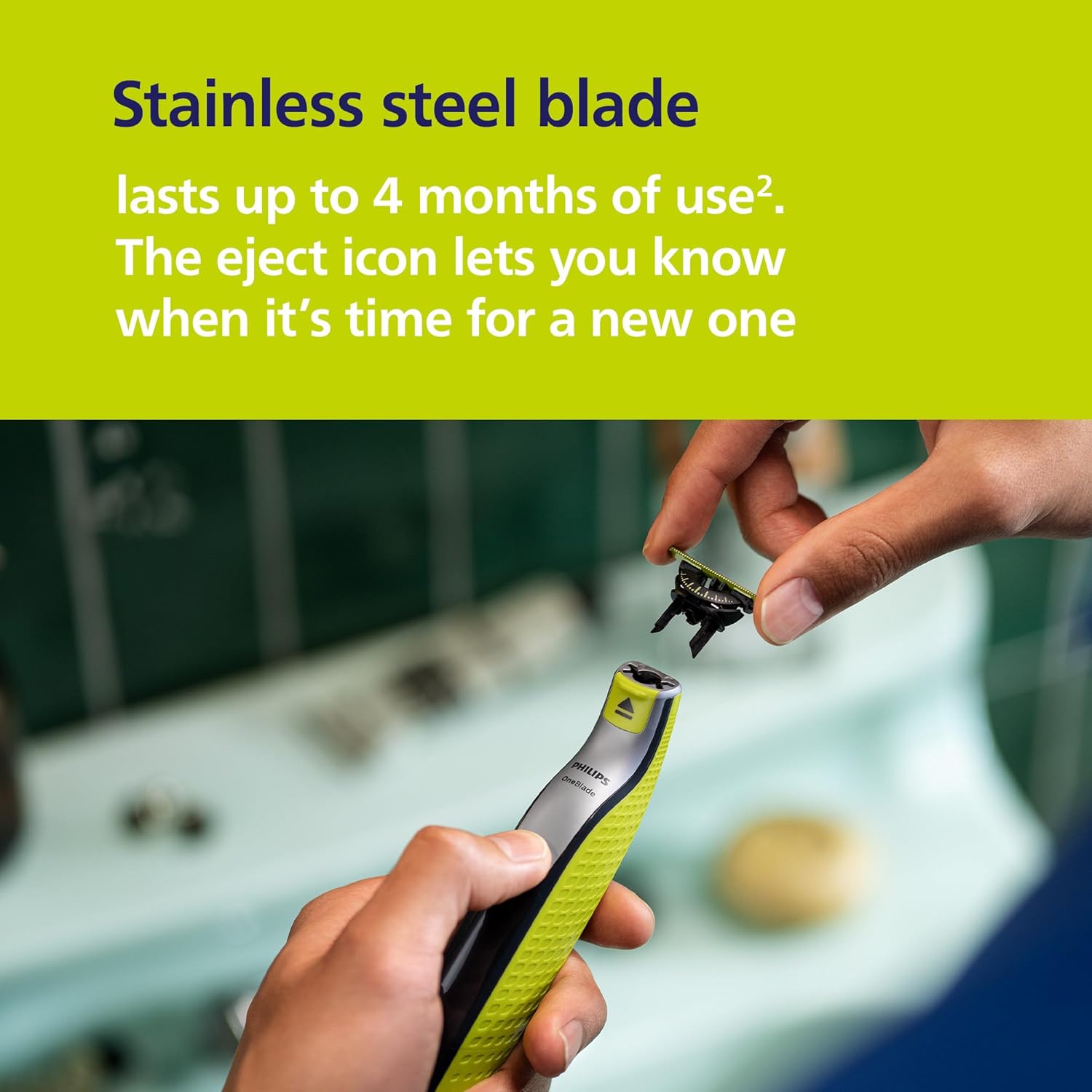 Does not become blunt easily: Stainless steel blade that lasts up to 4 months of use to keep that fresh feel. An eject icon will appear on the blade when it’s time for a new one
