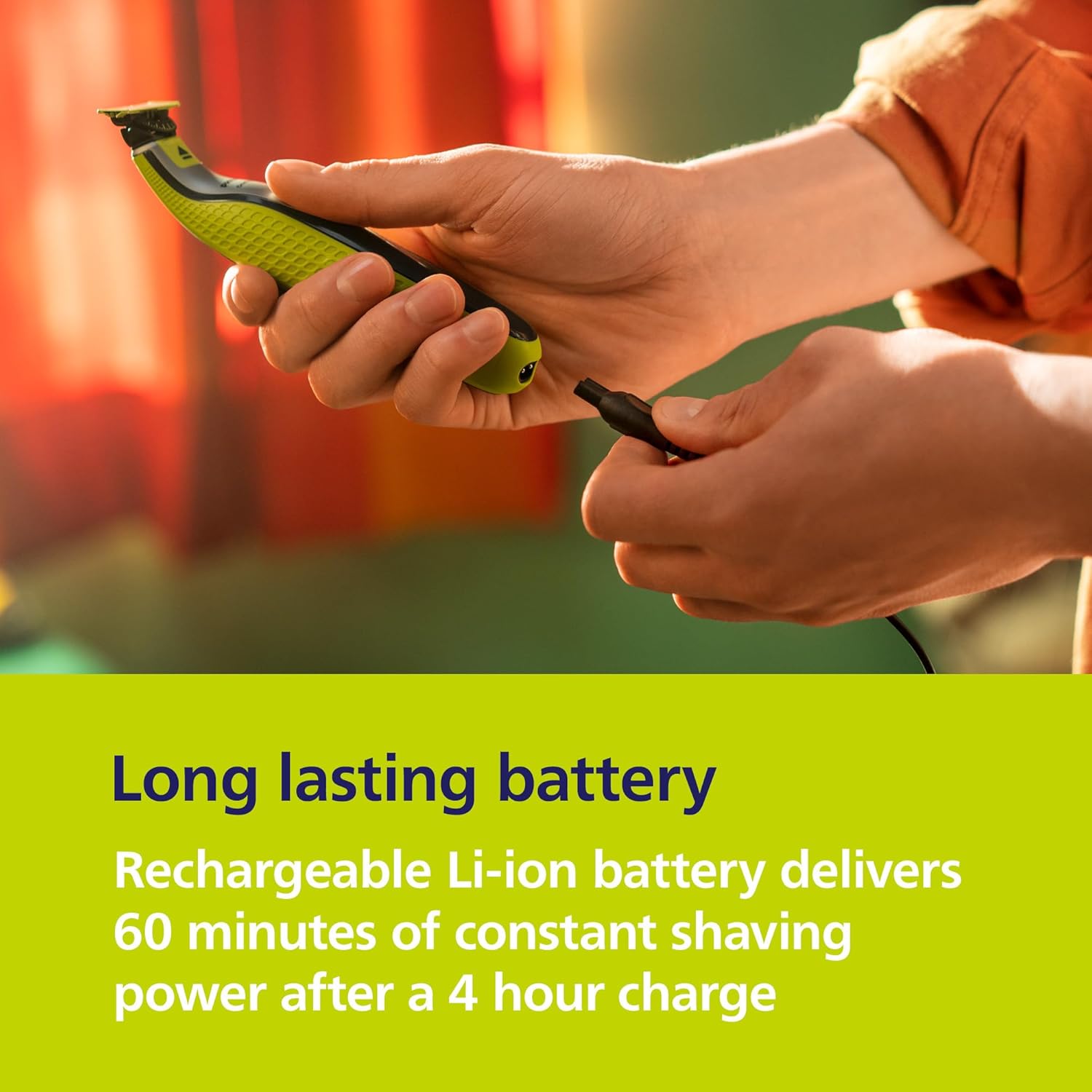 Easy grooming anywhere: Take it in the shower and use wet or dry. 60-minute battery with USB charging and compact handle make it the perfect travel companion. To charge the product, only use a certified USB adaptor with A-type connector and output rating 5 V, ≥ 1 A.