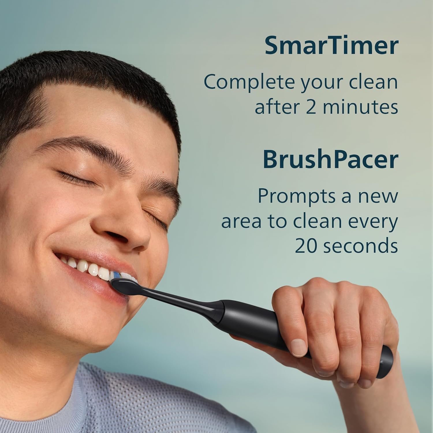 Easy Start feature facilitates the transition from manual to electric toothbrush with a gradual, gentle increase in brushing power across your first 14 cleans