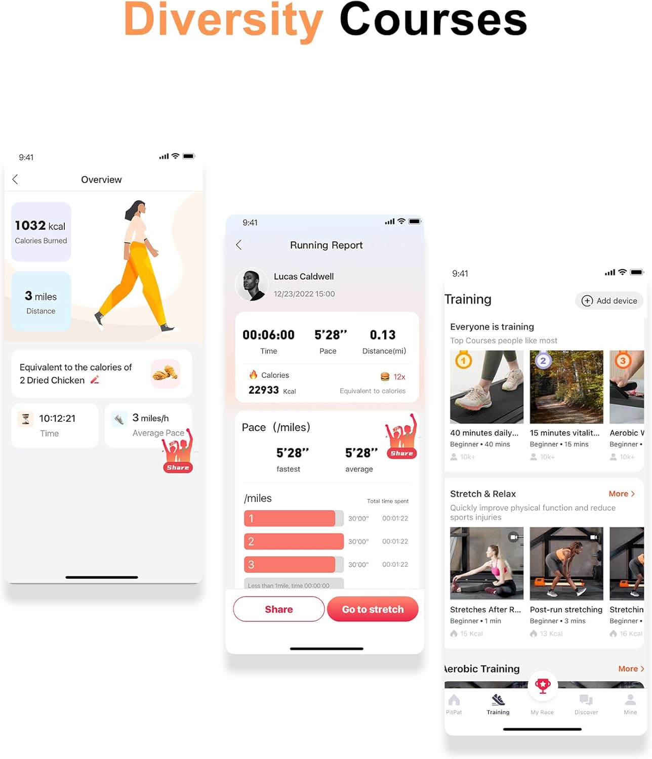 [Professional Training Course and AI Training] You can connect the portable treadmill to the APP to track your exercise progress at any time and achieve exercise goals. Don’t worry about being a newbie in sports, our APP will offer you training courses and AI training. Every step you run is rewarded, and you can win both wealth and health. And you can also join our online running community, make friends and challenge, make your exercise no longer boring.