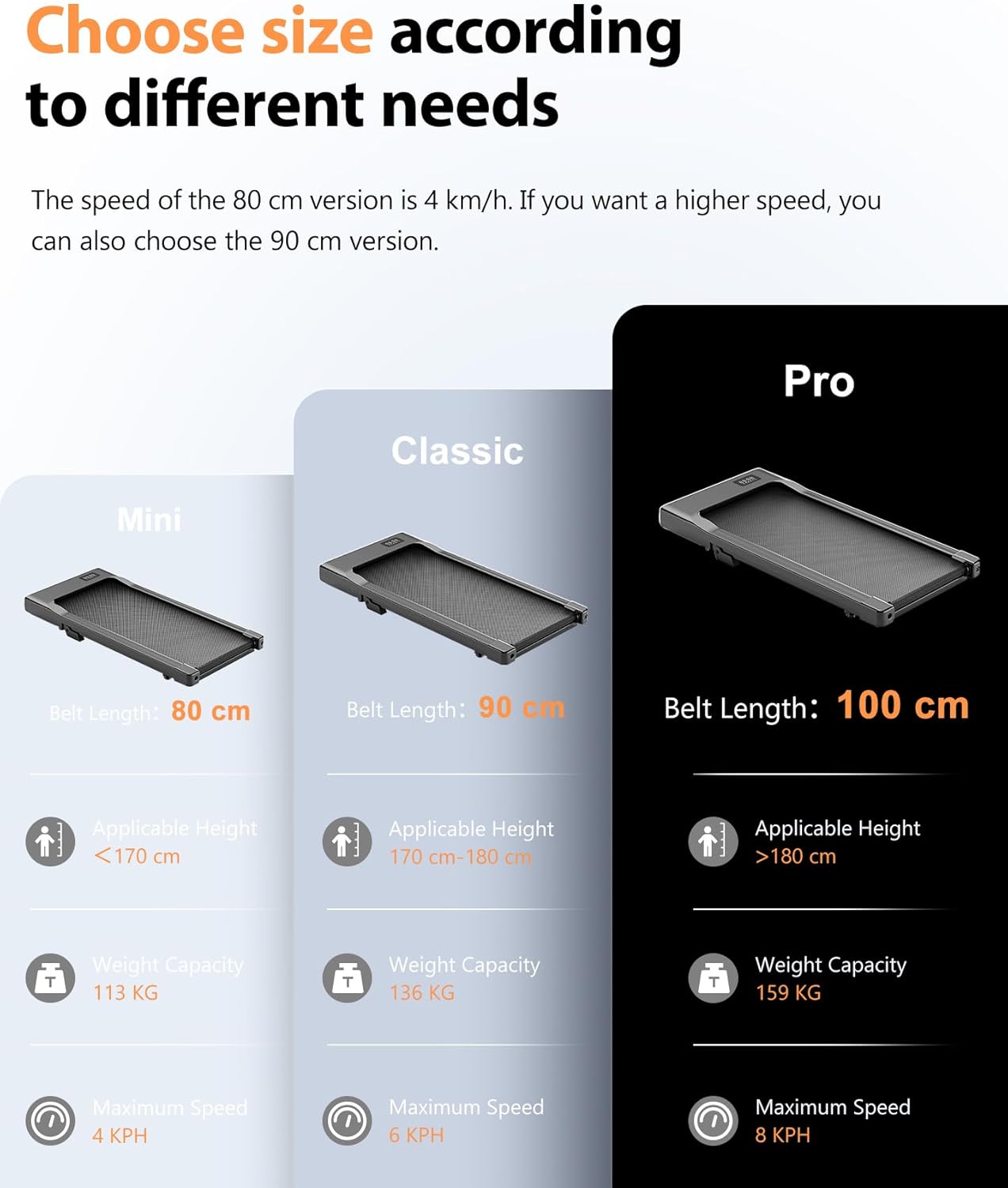 I’d been looking at getting one for a while now, going into winter so I can walk when the weather gets really terrible so I don’t drop steps, or when my partner goes out and I’m in with the kidseventually settled on getting this one as it was well priced, and well reviewed without many bells and whistles to go wrongReally Like that it’s not got any branding on it, got the 90cm one which is does the job (I’m 6ft, 85kg), fits under our sofa wellFeels sturdy, not particularly heavyRemote works well, the app is a bit Chinese and pointless for a walking pad but to be able to work the pad by phone is very useful if needs be, the visual challenges etc are a bit pointless for a walking pad (probably better for the faster ones you can jog on)Dropped a star because everything is metric, and although can be changed to mph on the app it doesn’t go onto the display, might be useful for some but calories are pretty pointless for me, and doesn’t show a step counter, just distance, I’m happy to live with those tweaks for the price, as i use it to top up anyway on steps my Garmin is showing (no issues there in that respect for tracking)Adjusting the belt looks easy enough, and comes with a kit and oil, but haven’t had to do anything yet, as it came all ready out of the box, it does let you know the intervals to do it in the manual so happy enough to sort it when the time comesWill update this review if anything odd happens but it’s been nearly a month now with no issues at all and does the expected job I wanted it to