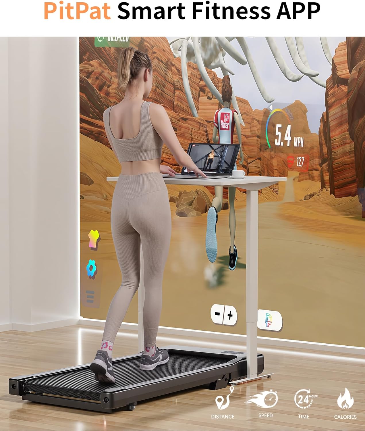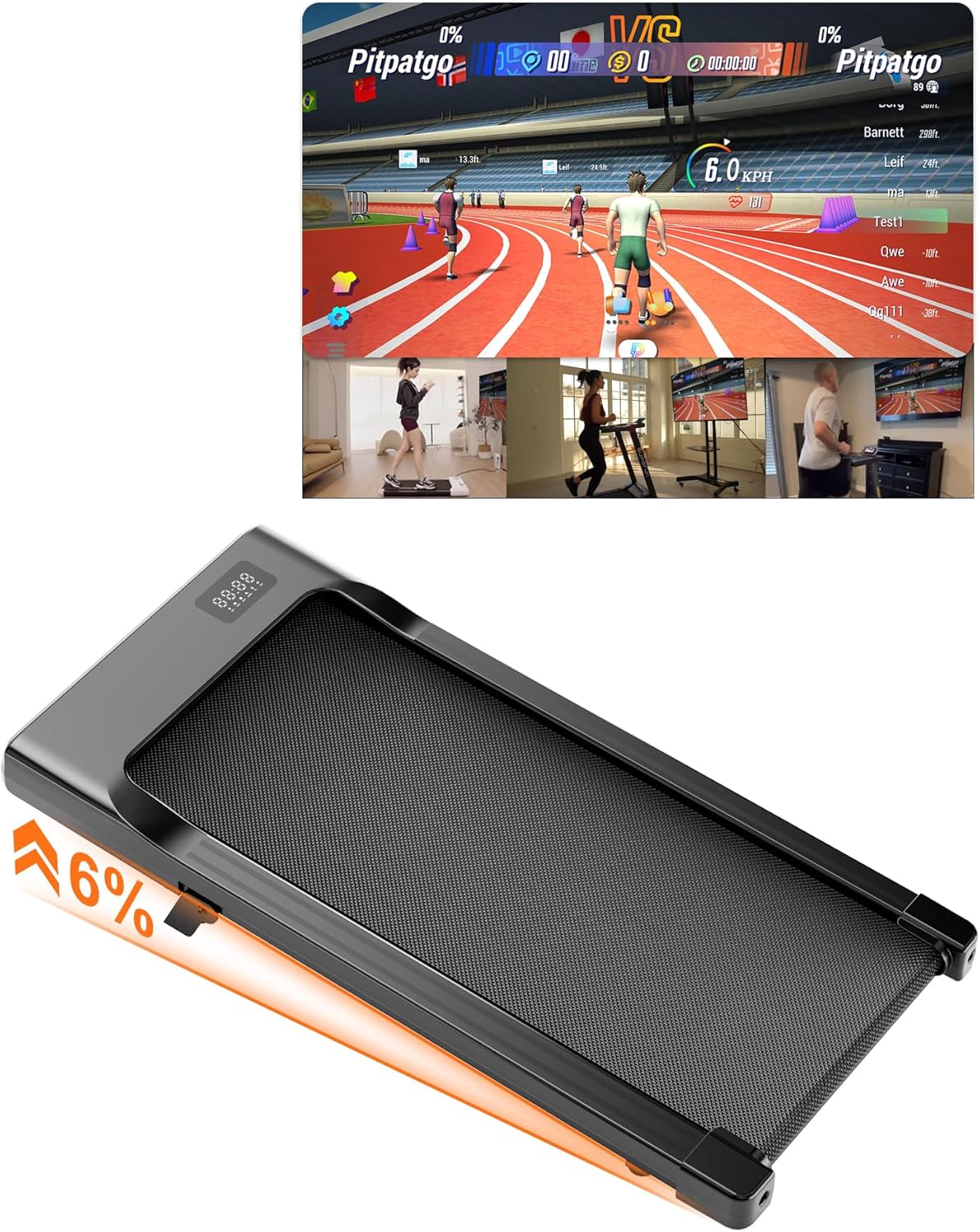 [Compatible with High-tech Wearable Device] Our treadmill for home is compatible with High-tech wearable device, giving you an immersive audio-visual experience, a variety of gaming scenes to choose from, as well as entertainment and fitness.Our APP offers multiplayer online running competitions, where you can compete with runners from all over the world at the same time, making your exercise more interesting with the Superun walking pad treadmill.