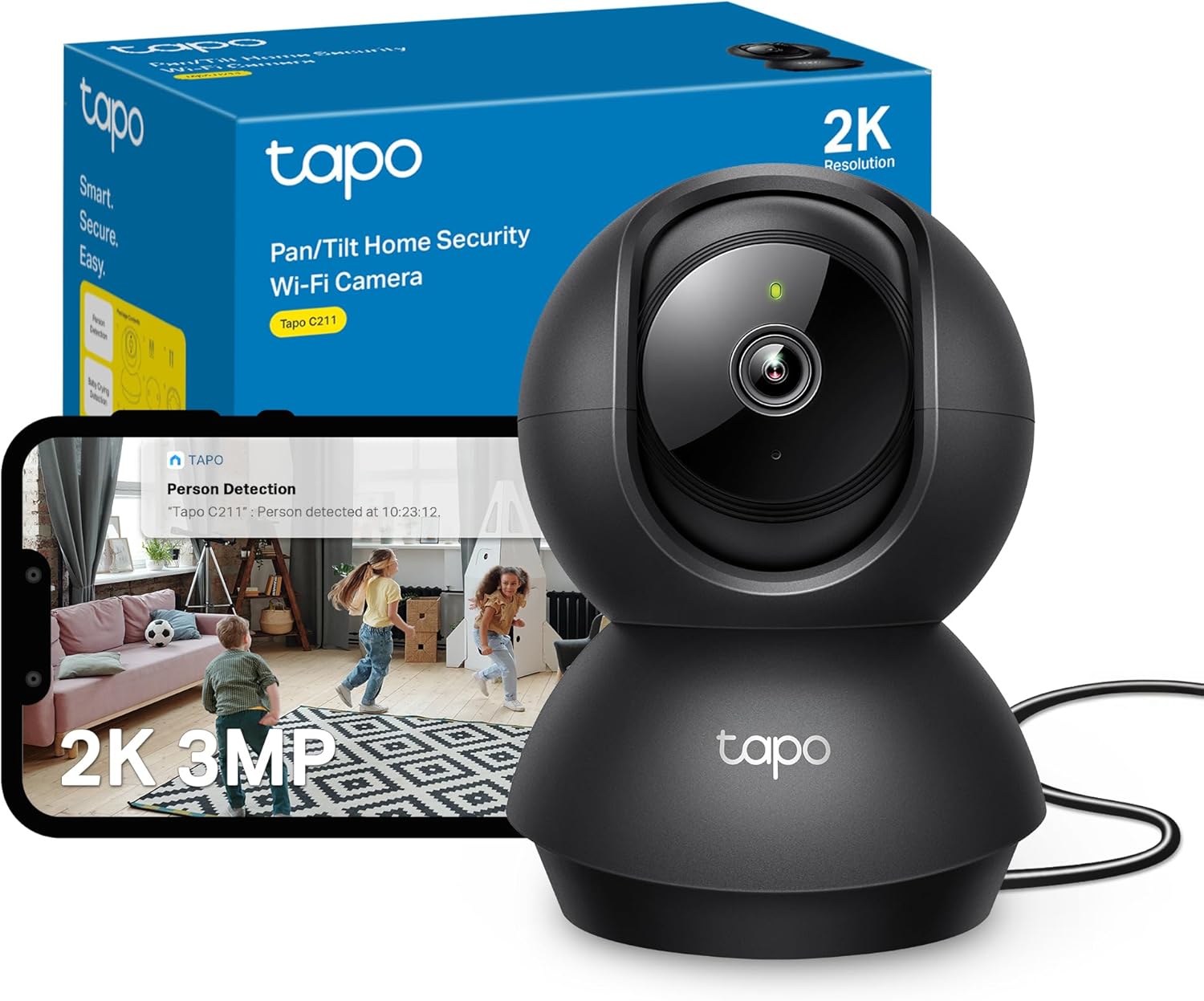 Tapo C211 2K 3MP Pan/Tilt Indoor Camera House Security Camera, WiFi Camera, No Monthly Fee, AI Detection, Dog Camera, Baby Camera Monitor, CCTV, 360° View, Night Vision, Works with Alexa & Google
