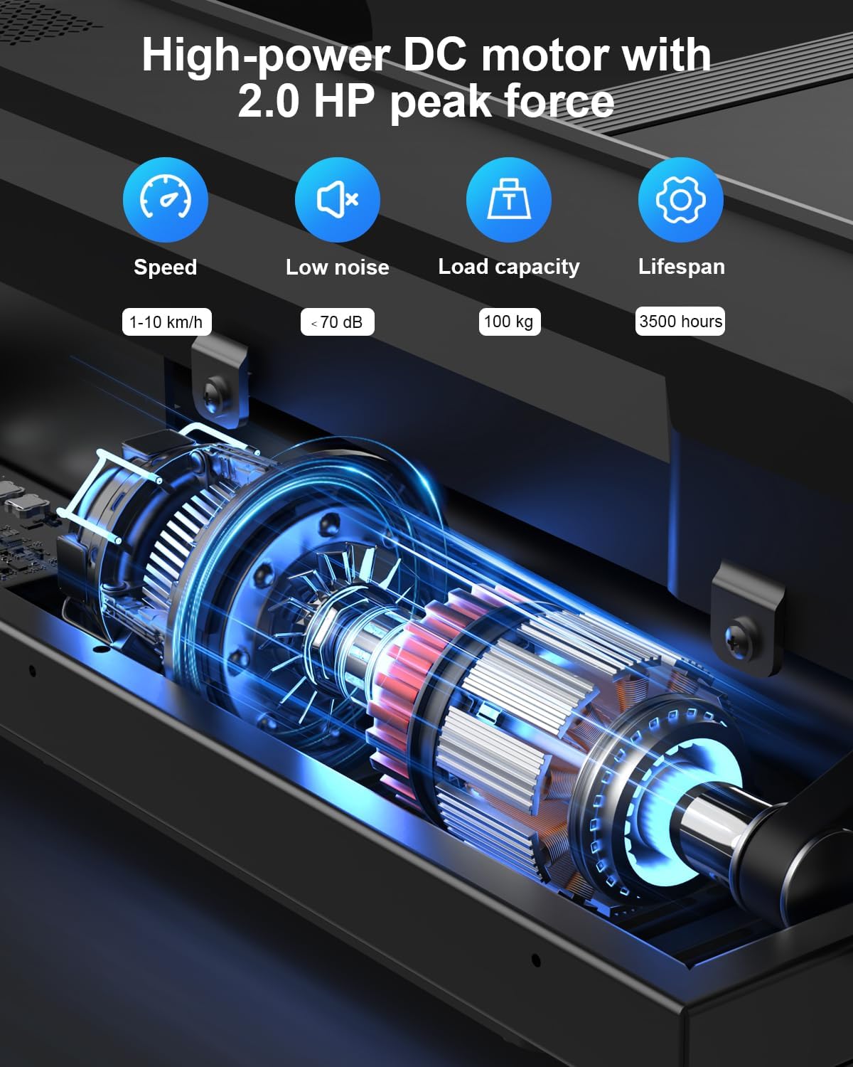 Powerful DC Motor & Quiet: The DC motor of this foldable treadmill has a peak power of 2.0HP and a continuous power of 0.75HP, providing high performance for high-intensity and long workouts. This treadmills for home foldable has a speed range of 1 to 10 km/h, ensuring smooth operation while the motor remains quiet with a noise level of less than 70 dB.